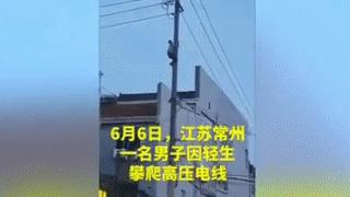 ▲男子為自殺爬上高壓電線(xiàn)(圖/現代快報)